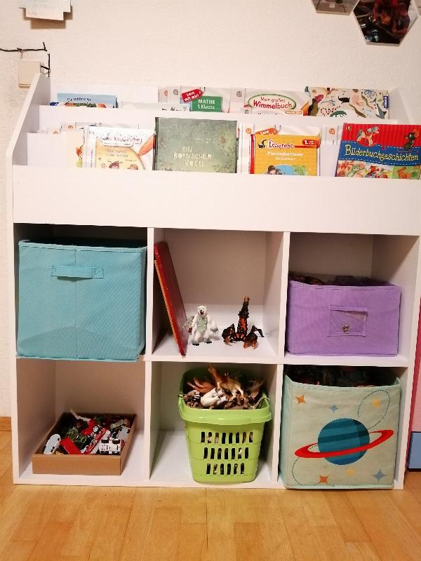 Unsere Tochter liebt Bücher und wir können mit diesem Regal ganz viele Bücher verstauen - obwohl wir noch viel viel mehr haben. Auch unsere Dinge, wie Puzzle und Lego lassen sich in diesem Regal verstauen.