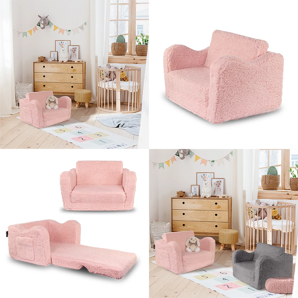 Mit dem Mini-Sessel "Conni" treffen Eltern eine gute Entscheidung für ein stilvolles und unterhaltsames Design, das in jeder Wohnung Platz findet.Das Minisessel ist speziell für Kinder konzipiert und besticht durch eine bequeme Schaumstoff-Füllung sowie ein ansprechendes Design. Ideal für gemütliche Stunden zum Spielen oder Entspannen.MAßE: Der Kuschelsessel hat die Maße 60 x 36 x 36-91 cm. Die detaillierten Größen sind auf den Fotos angegeben.MATERIAL: Der ausklappbare Sessel besteht aus Schaumstoff und ist mit pflegeleichtem Polyester bezogen.LIEFERUMFANG: Kindersessel, Montageanleitung, Montagematerial (Dekoration nicht enthalen).Der Kindersessel Conni ist ein zauberhaftes Möbelstück für das Kinderzimmer, das speziell für die Bedürfnisse der Kleinen entwickelt wurde. Mit seiner bequemen Schaumstoff-Füllung bietet er den Kindern einen gemütlichen Platz zum Entspannen, Spielen und Lesen. Das tolle Design des Minisessels ist nicht nur ansprechend für die kleinen Augen, sondern passt auch perfekt in jedes Kinderzimmer. Mit dem Kindersessel Conni schaffen Sie eine gemütliche Ecke, in der sich Ihr Kind wohlfühlen und kreativ entfalten kann. Gönnen Sie Ihrem kleinen Liebling ein eigenes Möbelstück, das speziell für ihn gemacht ist!---Technische Details:Farbe:GrauMaße:zusammen geklappt: 60 x 36 x 36 cm (BxHxT)auseinander geklappt: 60 x 28 x 91 cm (BxHxT)Liegefläche: 41 x 81 x 8 (BxLxH)Material:Bezug: PolyesterFüllung: Schaumstoffzusätzliche Details:- Artikel wird vakuumiert verpackt geliefert und benötigt 72 Stunden um seine volle Größe zu erreichenArtikelgewicht:1.9 kgArtikelgewicht inkl. Verpackung:2.3 kg---LIEFERUMFANG: Kindersessel, Montageanleitung, Montagematerial.Der Kindersessel "Conni" ist ein ausklappbares Minisofa, ideal für das Kinderzimmer. Er bietet den Kleinen eine gemütliche Sitzgelegenheit, die bei Bedarf schnell in eine Liegefläche umgewandelt werden kann.