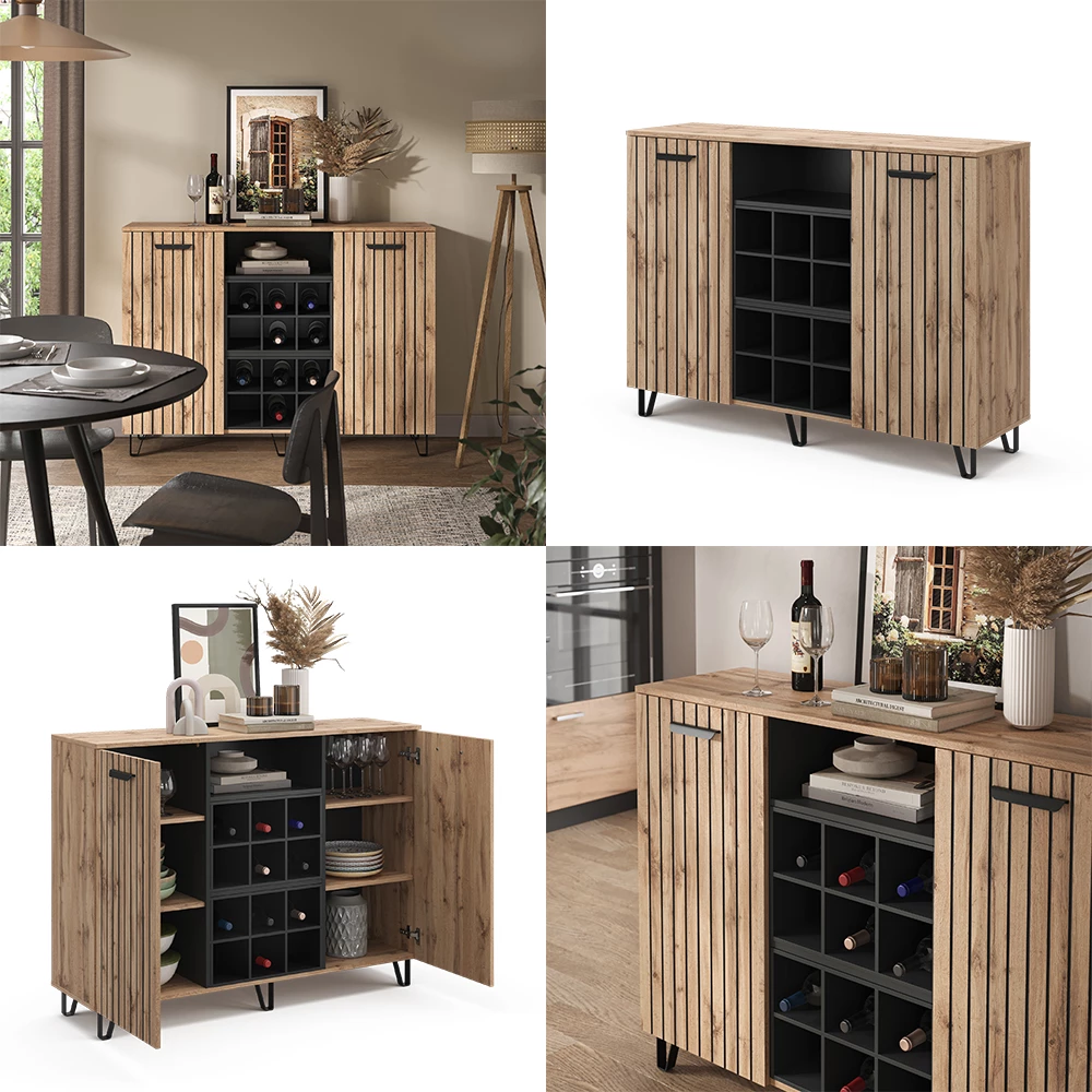 - Das Sideboard mit Türen bietet reichlich Stauraum. Es verfügt über eine praktische Kombination aus offenen und geschlossenen Ablageflächen.