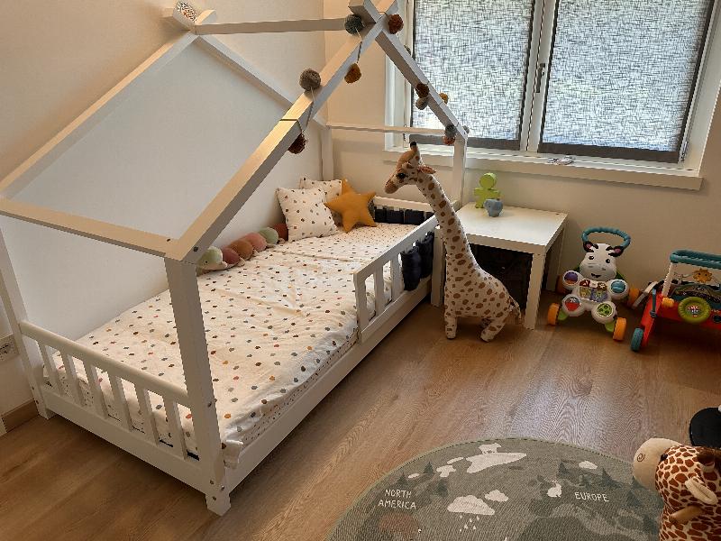 - MAßE: Das Kinderbett hat eine Breite von 90 cm, eine Höhe von 146 cm und eine Tiefe von 200 cm. Alle detaillierten Größen sind auf den Fotos angegeben.