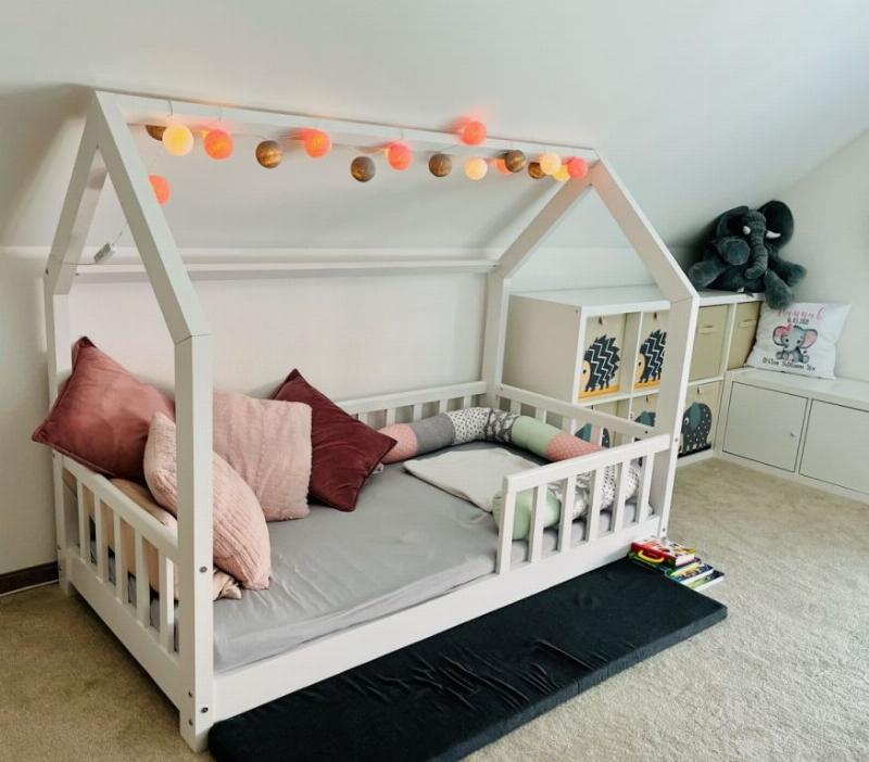 » Unsere kleine Tochter liebt ihr neues Bett! Schnell aufgebaut und zauberhaft anzusehen ist es ein Blickfang in ihrem Zimmer! Zudem muss man sich nie sorgen machen ob sie rauspurzelt dank Rausfallschutz und niedriger Höhe.