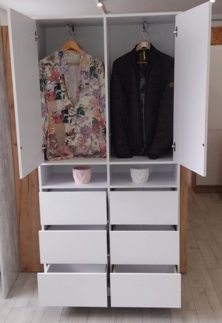 Kleiderschrank Naara Weiß 98.6 x 200 cm mit Schubladen Vicco