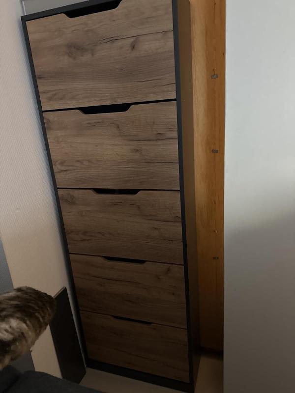» Petit meuble discret mais très utile. Je l’ai placé dans mon couloir étroit : il ne gêne pas le passage et permet de ranger jusqu’à 6 paires. Les compartiments s’ouvrent bien. Bonne qualité pour ce prix.