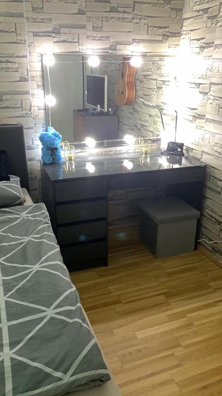 » Die Lieferung war nicht so einfach, da es 4 Tage ankam. Zuerst die Lichterkette, am nächsten Tag der Spiegel, dann die obere Platte und am vierten Tag der Reste des Tisches! Ich als Frau allein habe dafür 3 Stunden gebraucht. Die Anleitung war ok, Imbus-Schlüssel hat gefehlt, aber wenn man schon mal was aufgebaut hat, ist alles nocht so schwer, man muss vorher alles beschriften und alle Schrauben trennen, dann geht alles leicht wie im Plan. Was schwer ist alleine anzubringen war der Spiegel, der ist echt sehr schwer, dafür am besten eine Betonwand und keine Rigipswand, da er wirklich schwer ist und auf die Wand montiert werden muss! Ich habe alles mit dem Akkuschrauber montiert, was schwierig ist und etwas kompliziert sind die Laden. Man muss nämlich die Schienen an dem schwarzen kleinen Häckchen aus Plastik, die Schienen sind aus Metall auseinander bauen. Sind ganz glücklich mit dem Tisch, der Lacknost empfindlich für Fingerabdrücke!