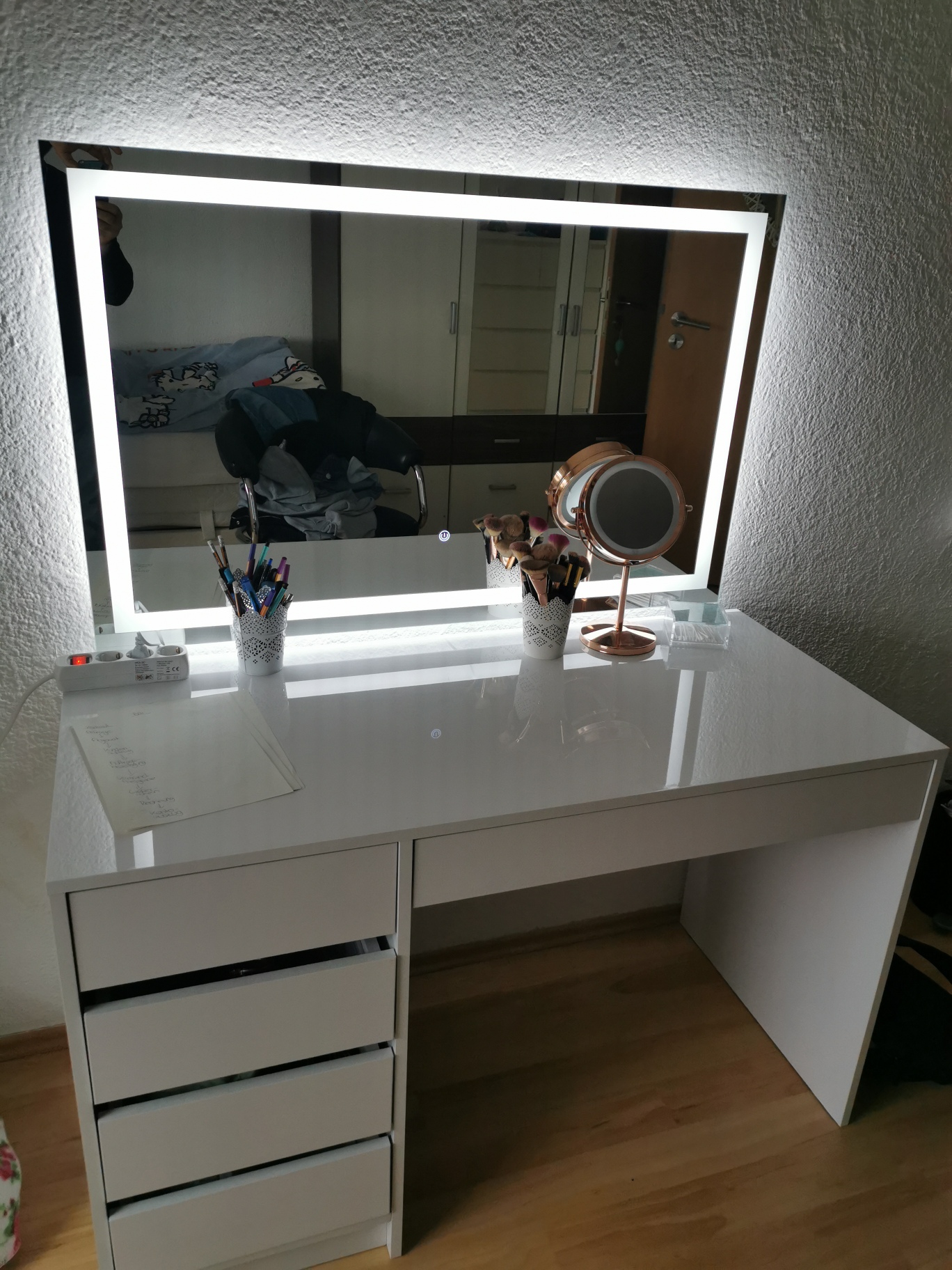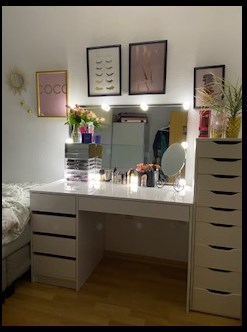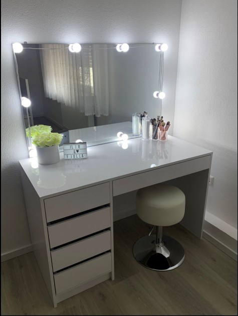 » Mein Schminktisch gefällt mir wirklich sehr gut, da er für mich sehr viel Stauraum hat und die LED‘s wirklich sehr gute Lichtverhältnisse bewirken. Er passt perfekt in mein Schlafzimmer.