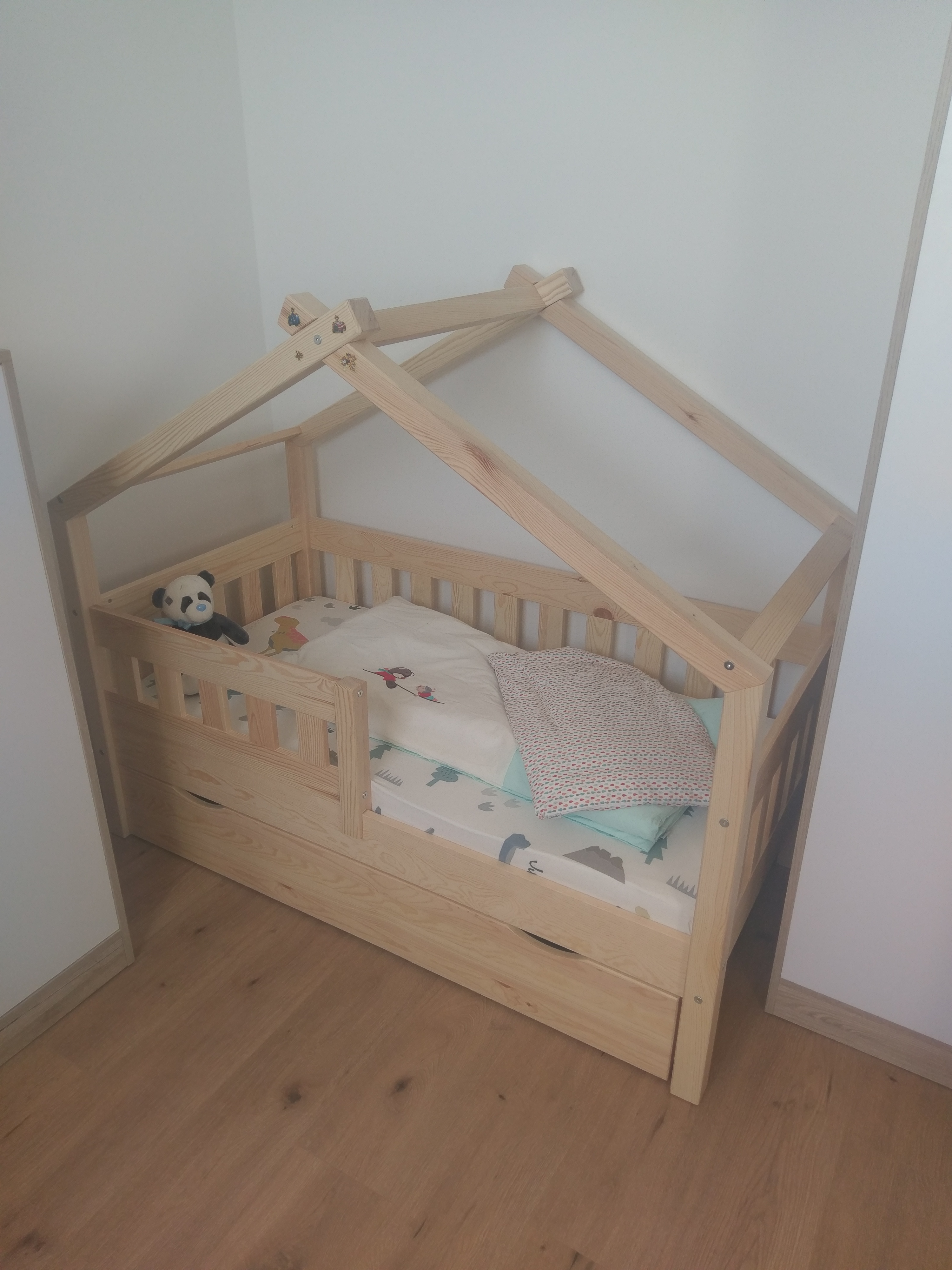 Unser Holzbett für das Kinderzimmer "Wiki" ist eine gute Entscheidung für Eltern, die nach einem optisch ansprechenden und funktionalen Bett suchen.Das Bett aus Holz ist der ideale Ort für Kinder, um ihre Fantasie und Kreativität auszuleben. Das Highlight im Kinderzimmer überzeugt durch seine hohe Qualität.MAßE: Das Kinderbett ist passend für eine Matratze von 80x160 cm und hat eine Höhe von 150 cm. Alle detaillierten Größen sind auf den Fotos angegeben.MATERIAL: Das Spielbett für Kinder besteht aus natürlichem KiefernholzLIEFERUMFANG: Hausbett, Montageanleitung, Montagematerial, 2 Schubladen.Das Hausbett Wiki mit Matratze ist das Bett, von dem Kinder träumen! Das Bett aus Holz ist ein fantastisches Spielbett und gleichzeitig ein gemütlicher Schlafplatz. Der Spielbereich regt die Fantasie und Kreativität Ihrer Kinder an und stärkt deren Vorstellungskraft. Das Hausbett ist aus hochwertigem Holz gefertigt und verleiht dem Kinderzimmer ein Highlight. Es ist in verschiedenen Ausführungen mit zusätzlichen Veredelungen erhältlich, die Ihrem Kind ein unvergleichliches Schlaferlebnis bieten. Dieses Bett ist das ideale Geschenk für Ihre Kleinen und ein Ort, an dem sie sicher und ruhig schlafen können.---Technische Details:Farbe(n):NaturholzAbmessungen:80 x 137 x 160 cm (BxHxT)Material:Holz (Kiefer)Artikelgewicht inkl. Verpackung:42.5 kg.Artikelgewicht:40.52 kg.---LIEFERUMFANG: Hausbett, Montageanleitung, Montagematerial, 2 Schubladen.Die Möbelserie "Wiki" umfasst Spielbetten in Hausform für Kinder. Mit mehreren Farbkombinationen und vielfältigen Konfigurationsmöglichkeiten bietet sie eine breite Auswahl. Gestalten Sie den Schlafbereich Ihres Kindes mit den verspielten und einzigartigen Betten der "Wiki" Serie und schaffen Sie eine gemütliche und fantasievolle Umgebung.