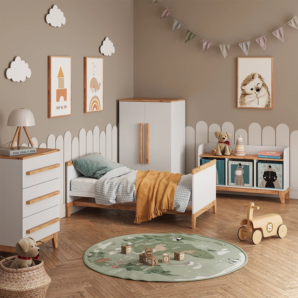 - MATERIAL: Der Kinderzimmerschrank besteht aus pflegeleichter Spanplatte 16 mm, mit einer Melaminharzbeschichtung.